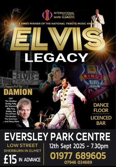 Internationally renowned Elvis Impersonator, MARK SUMMERS makes a welcome return on 12th September.... It will be a sell out so book early!!