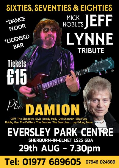 Mick Noble revists the sounds of Jeff Lynne from with memourable sounds from his time with The Move and ELO.... See him live on stage at Eversley Park Centre on Friday August 29th . His support act is no stranger to our stage 'Damion' with his take on Cliff, Elvis, Buddy Holly, Del Shannon, Billy Fury,The Drifters and many many more.